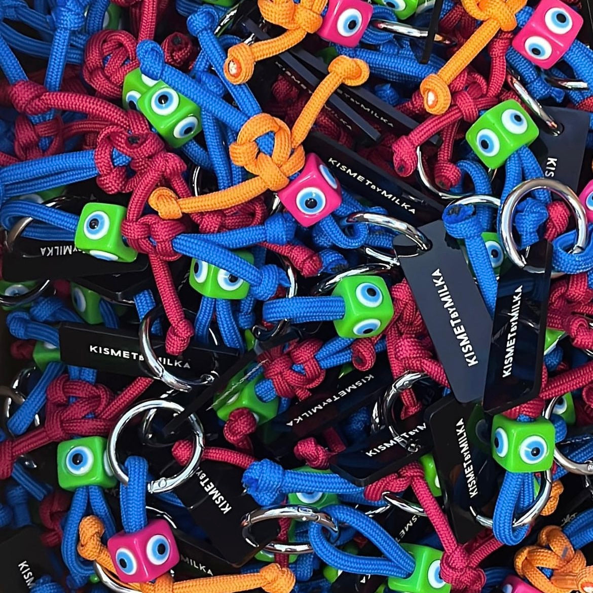 Kısmet by Milka'nın etkinlik hediyesi olarak kurumsal renklerde tasarlanan Nazar boncuklu ACT anahtarlıklar hazırladık.