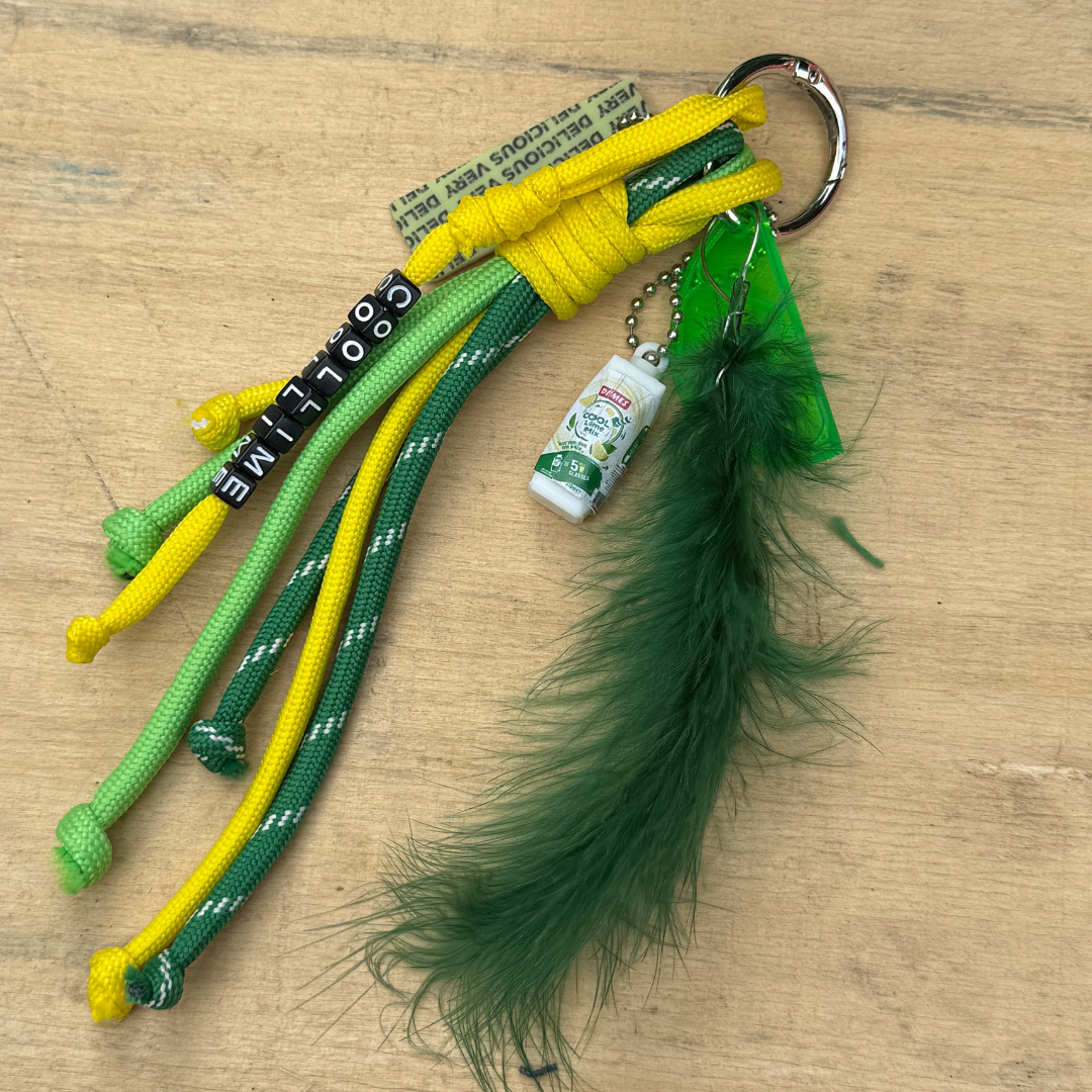Ropes in neon, a fluffy lime feather, and yes — a tiny Cool Lime bottle.